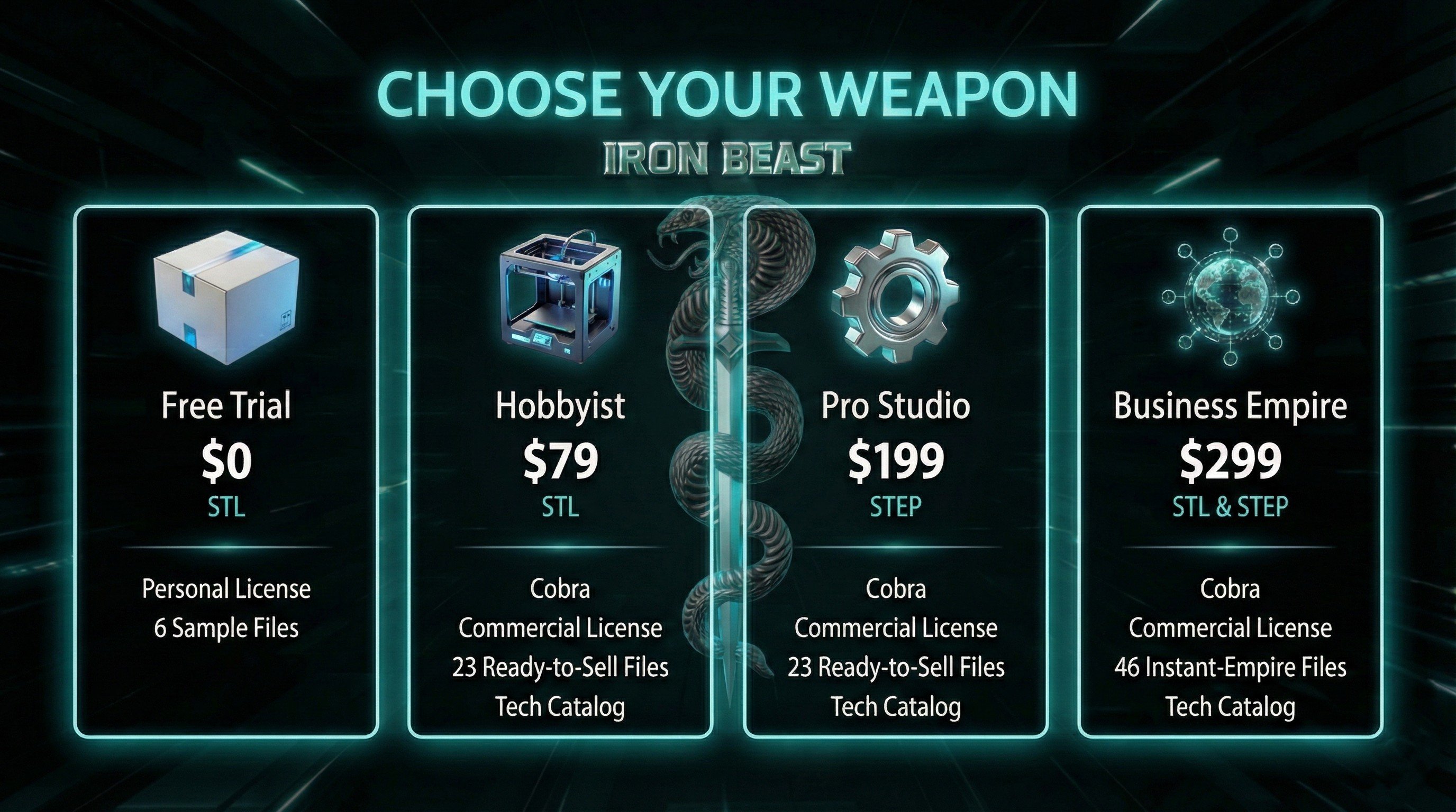 Option 1: THE ULTIMATE ARSENAL (Best Value π) Get the Business Empire Edition (STL + STEP) of our Top 5 Best-Sellers (Lion, Fox, Wolf, Cobra, Eagle Eye) in one pack.